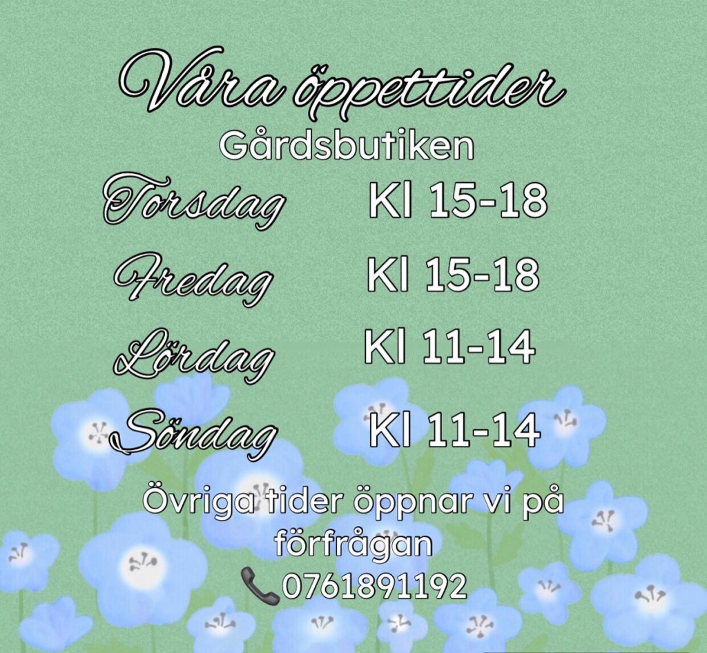 Vår gårdsbutik är nu Självbetjäningsbutik och du kan handla själv, när du vill, alla dagar kl 09-21!